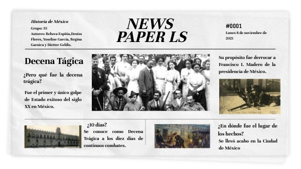 La decena trágica comenzó el 9 de febrero de 1913 cuando un grupo inconforme se levantaron en armas contra el gobierno de francisco I Madero la cual duro 10 días.