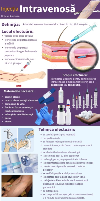 - se injectează lent soluţia medicamentoasă observând locul puncţionat şi reacţiile pacientului