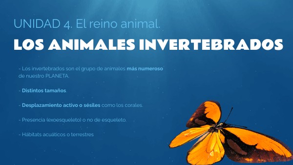 - Los invertebrados son el grupo de animales más numeroso de nuestro PLANETA. - Distintos tamaños. - Desplazamiento activo o sésiles como los corales. - Presencia (exoesqueleto) o no de esqueleto. - Hábitats acuáticos o terrestres
