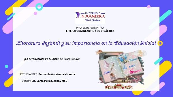 PROYECTO FORMATIVO LITERATURA INFANTIL Y SU DIDÁCTICA