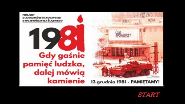 PROJEKT SKIEROWANY JEST DO UCZNIÓW I NAUCZYCIELI SZKÓŁ PODSTAWOWYCH I PONADPODSTAWOWYCH WOJEWÓDZTWA ŚLĄSKIEGO. JEGO GŁÓWNYM CELEM JEST PRZYGOTOWANIE DZIECI I MŁODZIEŻY DO ŚWIADOMEGO PRZEŻYWANIA 40 ROCZNICY WPROWADZENIA W POLSCE STANU WOJENNEGO.