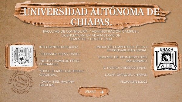 UNIDAD DE COMPETENCIA: ÉTICA Y RESPONSABILIDAD SOCIAL. DOCENTE: DR. BERNARDO LOPEZ MALDONADO. ACTIVIDAD: EVIDENCIA FINAL. LUGAR: CATAZAJA, CHIAPAS. FECHA:16/11/2021