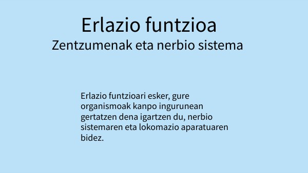 Erlazio funtzioa:zentzumenak eta nerbio sistema