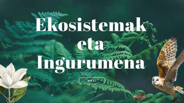 - Ekosistema baten oinarrizko elementuak.- Zertan bereizten diren ekoizleak, kontsumitzaileak eta deskonposatzaileak. - Lehorreko eta uretako ekosistemen ezaugarriak. - Lurzoruaren garrantzia. - Ekosistemetan gizakiak eragiten dituen kalteak. - Euskal Herriko habitatak.