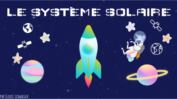 Le Système Solaire est le nom donné à notre système planétaire, qui comprend notre étoile (le Soleil), les 8 planètes qui tournent autour du Soleil, les satellites qui tournent autour de chaque planètes, les planètes naines (trop petites pour être considérées comme planètes), les astéroïdes et les comètes. Une planète est un corps céleste sphérique qui tourne autour d'une étoile. Les planètes les plus proches du Soleil sont rocheuses ou telluriques (mercure, Vénus, Terre, Mars) alors que les planètes les plus loins du Soleil sont gazeuses (Jupiter, Saturne, Uranus, Neptune). Les planètes portent les noms des dieux romains, et correspondent chacune à un jour de la semaine. Dans l'Univers, il existe des milliards de Systèmes comme le notre. Certains systèmes ont plus de planètes de nous, d'autres moins. Certains systèmes ont même plusieurs étoiles, donc plusieurs Soleils !