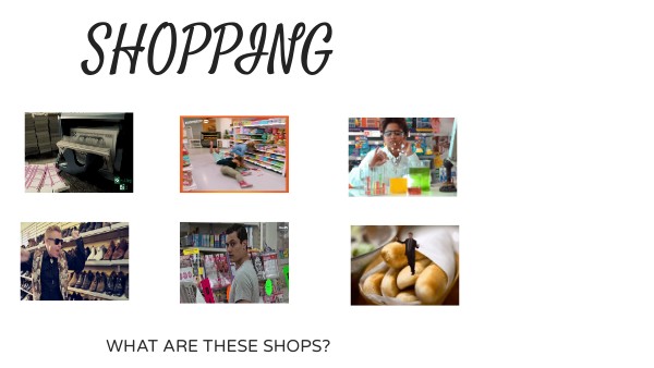 1. Baker's2. shoe shop 3. chemist's 4. bank 5. supermarketc 6. newsagent's Picture 1 Picture 2 Picture 3 Picture 4