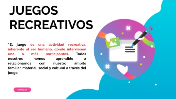 “El juego es una actividad recreativa, inherente al ser humano, donde intervienen uno a más participantes. Todos nosotros hemos aprendido a relacionarnos con nuestro ámbito familiar, material, social y cultural a través del juego.