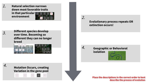 Place the descriptions in the correct order to best describe the process of evolution