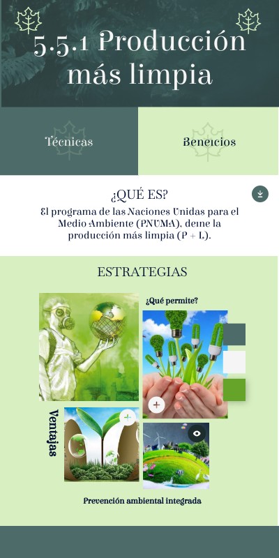 El programa de las Naciones Unidas para el Medio Ambiente (PNUMA), define la producción más limpia (P + L).