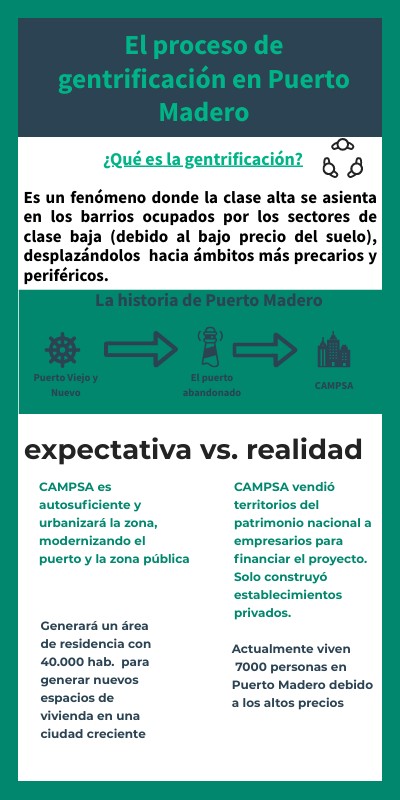 Al establecer a Puerto Madero como un espacio en el que solo puede vivir la clase alta por sus precios, las clase media y baja son excluídas de la ecuación