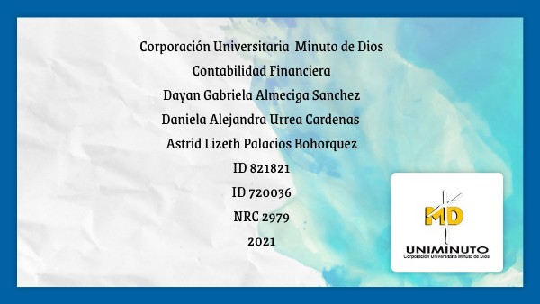 Corporación Universitaria Minuto de Dios Contabilidad Financiera Dayan Gabriela Almeciga Sanchez Daniela Alejandra Urrea Cardenas Astrid Lizeth Palacios Bohorquez ID 821821 ID 720036 NRC 2979 2021