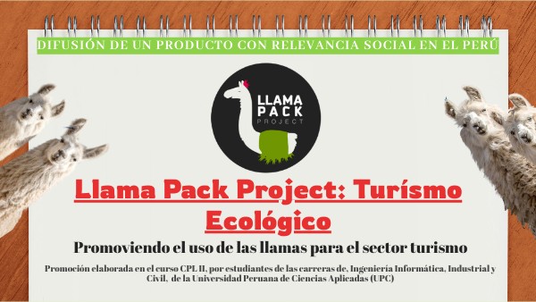 La promoción de la marca Llama Pack Project: Turísmo ecológico, ha sido realizada como parte del curso de Lenguaje II, por los siguientes estudiantes: