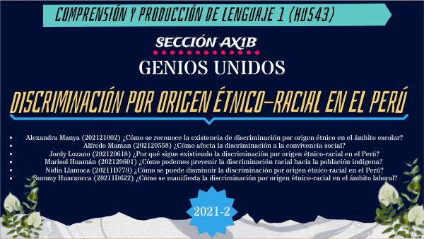 - Jordy Lozano (202120618) ¿Por qué sigue existiendo la discriminación por origen étnico-racial en el Perú?