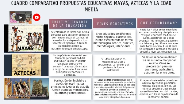 CUADRO COMPARATIVO PROPUESTAS EDUCATIVAS MAYAS, AZTECAS Y LA EDAD MEDIA