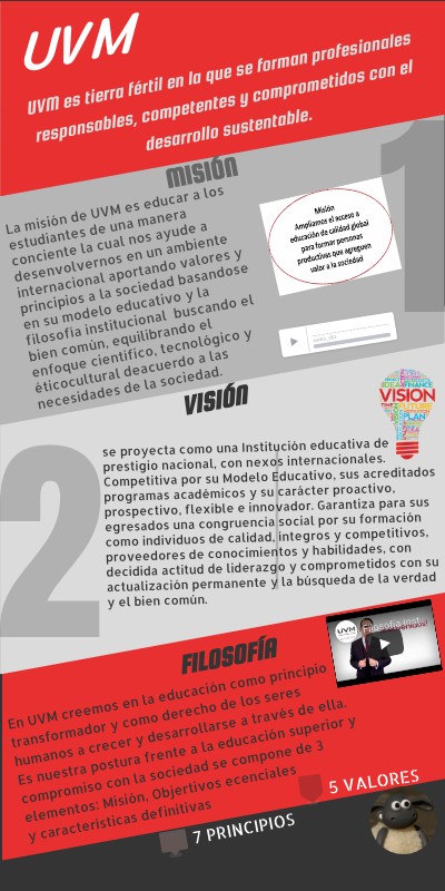 En UVM creemos en la educación como principio transformador y como derecho de los seres humanos a crecer y desarrollarse a través de ella.Es nuestra postura frente a la educación superior y compromiso con la sociedad se compone de 3 elementos: Misión, Objertivos ecenciales y características definitivas