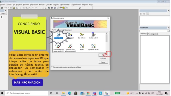 Conoce el entorno de VB explorando los enlaces de esta ventana.