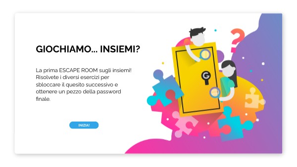 La prima ESCAPE ROOM sugli insiemi!Risolvete i diversi esercizi per sbloccare il quesito successivo e ottenere un pezzo della password finale.