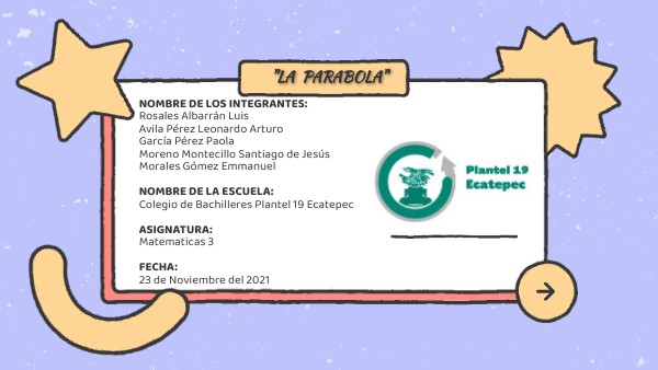 NOMBRE DE LOS INTEGRANTES: Rosales Albarrán Luis Avila Pérez Leonardo Arturo García Pérez Paola Moreno Montecillo Santiago de Jesús Morales Gómez Emmanuel NOMBRE DE LA ESCUELA: Colegio de Bachilleres Plantel 19 Ecatepec ASIGNATURA: Matematicas 3 FECHA: 23 de Noviembre del 2021