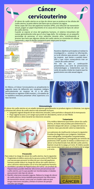 El cáncer de cuello uterino es un tipo de cáncer que se produce en las células del cuello uterino, la parte inferior del útero que se conecta a la vagina. Varias cepas del virus del papiloma humano (VPH), una infección de transmisión sexual, juegan un papel importante en la causa de la mayoría de tipos de cáncer de cuello uterino. Cuando se expone al virus del papiloma humano, el sistema inmunitario del cuerpo generalmente evita que el virus haga daño. Sin embargo, en un pequeño porcentaje de personas, el virus sobrevive durante años, contribuyendo al proceso que hace que algunas células del cuello uterino se conviertan en células cancerosas, y aqui es donde comienza la peor etapa para la mujer.