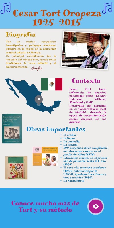 César Tort tuvo influencia de grandes pedagogos como Kodaly, Dalcroze, Willems, Martenot y Orff. Desarrolla sus estudios en el Conservatorio Real de Madrid durante la época de reconstrucción social después de las guerras.