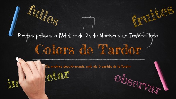 Aquesta és la documentació dels dos projectes de Tardor a l'atelier de Maristes La Immaculada de Barcelona. Els protagonistes són els nens, els colors, la poesia i evidenment la tardor.