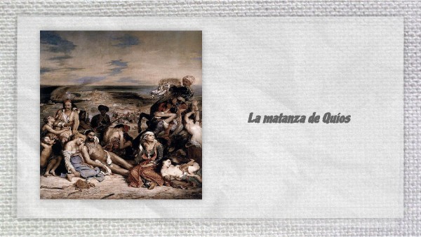 - Cuadro pintado por Eugène Delacroix en 1824 y conserbado en el museo parisino del Louvre. En la obra se representa un episodio de la guerra de independencia griega contra los turcos, en la cual los griegos son masacrados por los turcos y que tien por escenario la isla griega Quios.