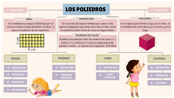 Es la porción del espacio limitada por cuatro o más regiones poligonales que tienen dos a dos un lado común. Los poliedros tienen entre dos caras un ángulo diedro.