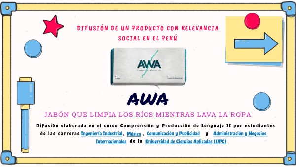 La promoción de la marca awa ha sido realizada como parte del curso comprensión y producción lenguaje ii, por las siguientes estudiantes: