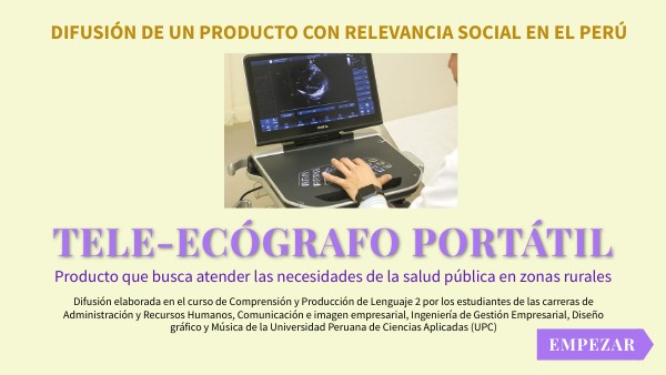 LA PROMOCIÓN DEL TELE-ECÓGRAFO PORTÁTIL HA SIDO REALIZADA COMO PARTE DEL CURSO DE COMPRENSIÓN Y PRODUCCIÓN DE LENGUAJE II, POR LOS SIGUIENTES ESTUDIANTES: