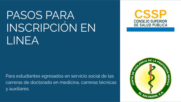 Se recomienda realizar la inscripción por medio de una computadora, usando los navegadores actualizados: Firefox Mozilla o Google Chrome a la página del Consejo Superior de Salud Pública : http://cssp.gob.sv/