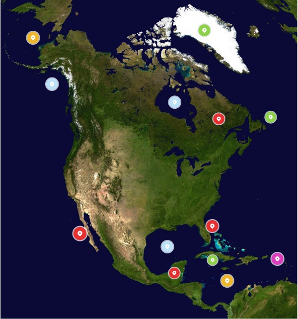 Golfos, penínsulas, mares, islas... de América del Norte.