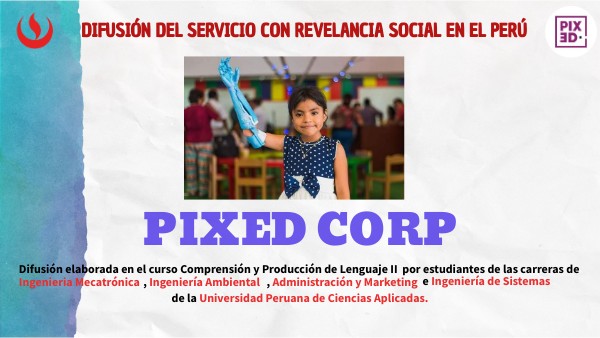 LA PROMOCIÓN DEL SERVICIO PIXED CORP HA SIDO REALIZADA COMO PARTE DEL CURSO COMPRESIÓN Y PRODUCCIÓN DE LENGUAJE II,POR LOS SIGUIENTES ESTUDIANTES :