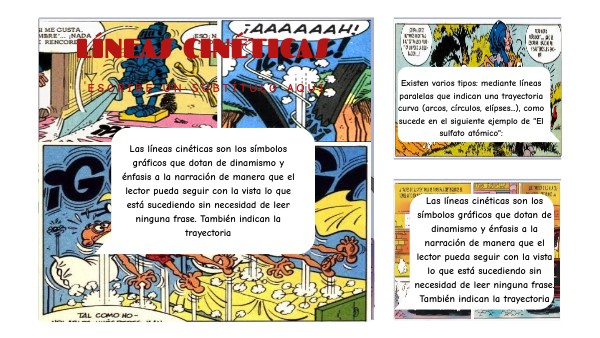1.- Las líneas cinéticas son los símbolos gráficos que dotan de dinamismo y énfasis a la narración de manera que el lector pueda seguir con la vista lo que está sucediendo sin necesidad de leer ninguna frase. También indican la trayectoria