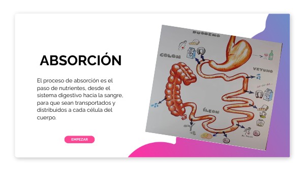 El proceso de absorción es el paso de nutrientes, desde el sistema digestivo hacia la sangre, para que sean transportados y distribuidos a cada célula del cuerpo.