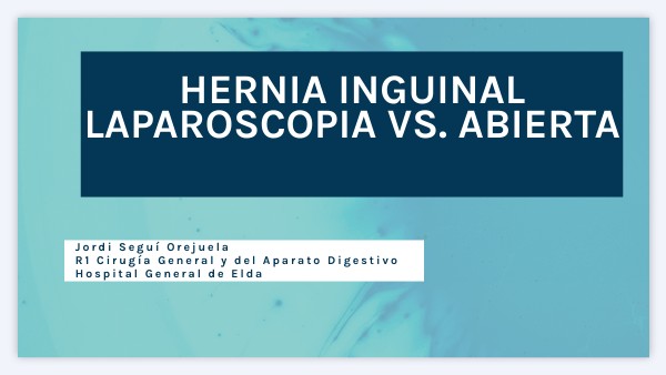 - vlsurger. (2019, julio 16). Hernia inguinal: cirugía por laparoscopia vs. cirugía abierta convencional - VL Surgery. Vlsurgery.com. https://www.vlsurgery.com/hernia-inguinal-cirugia-por-laparoscopia-vs-cirugia-abierta-convencional/