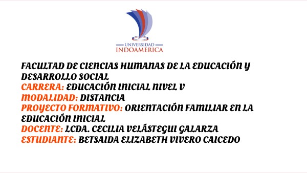 FACULTAD DE CIENCIAS HUMANAS DE LA EDUCACIÓN Y DESARROLLO SOCIAL CARRERA: EDUCACIÓN INICIAL NIVEL V MODALIDAD: DISTANCIA PROYECTO FORMATIVO: TIC EN EDUCACIÓN DOCENTE: LCDO. JULIO CABRERA LOPEZ ESTUDIANTE: BETSAIDA ELIZABETH VIVERO CAICEDO