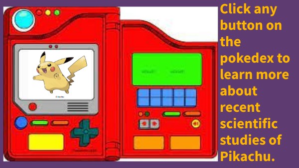 Click any button on the pokedex to learn more about recent scientific studies of Pikachu.