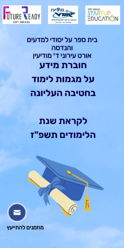 * יש למלא את הטופס המקוון עד יום ד' ה-7.1.2026, יח' בטבת תשפ"ו. * אנו מבקשים למלא את הטופס לאחר ערב הצגת המגמות שיתקיים ביום א' 4/1/2026, טו' בטבת תשפ"ו. * אנא הקפידו למלא את כל שלבי השאלון עד לקבלת אישור של שליחת הטופס.