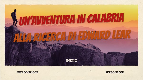 Nel 1847 Edward Lear (scrittore ed illustratore inglese) visitò la Calabria recandosi nei luoghi per lui più importanti e rappresentativi dal punto di vista storico e paesaggistico. Durante il suo tragitto, in questi meravigliosi posti, si perse e non seppe più ritornare indietro. Aiutaci a ritrovarlo seguendo le sue tracce e consultando gli amici che ha conosciuto durante il suo viaggio.