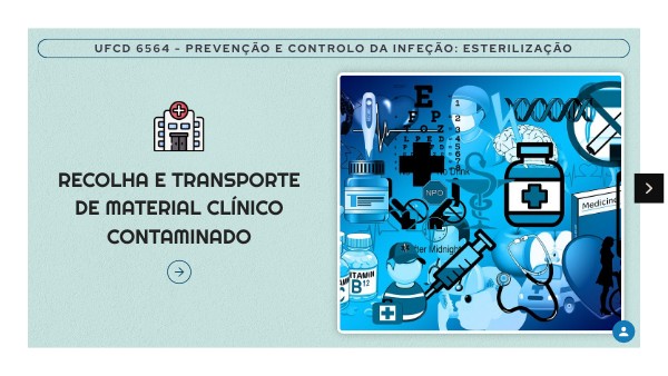 Na disciplina de Formação Técnica 3, foi-nos proposto pela professora Carla Inês Pires, no âmbito da UFCD 6564, a elaboração de uma apresentação sobre a recolha e transporte de material clínico contaminado, que ajuda na prevenção de infeções associadas aos cuidados de saúde.