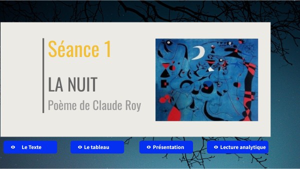 Selon Claude Roy, la nuit apparaît et disparaît mystérieusement sans que l'on s'y attende. Comme un éternel recommencement, elle ressemble à une femme ambivalente qui est tout à la fois, voleuse discrète un jour, veilleuse bergère et solitaire le lendemain. Elle devient alors l'image de la femme idéale, sensuelle, une déesse aux pouvoirs magiques sur notre monde.
