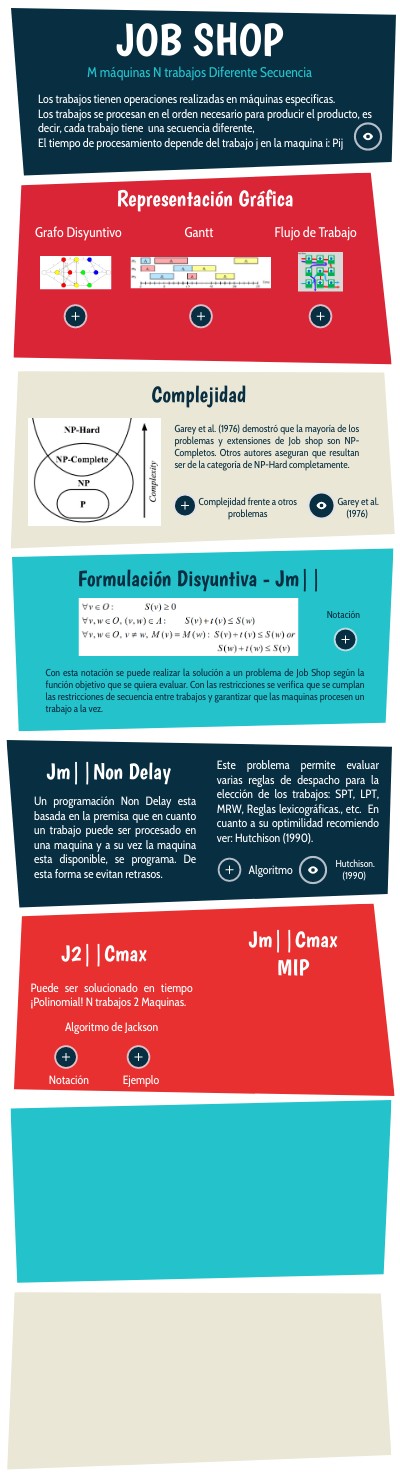 Garey et al. (1976) demostró que la mayoría de los problemas y extensiones de Job shop son NP-Completos. Otros autores aseguran que resultan ser de la categoría de NP-Hard completamente.