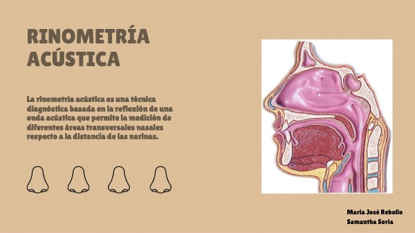 La rinometría acústica es una técnica diagnóstica basada en la reflexión de una onda acústica que permite la medición de diferentes áreas transversales nasales respecto a la distancia de las narinas.