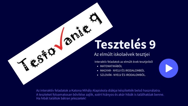 Az interaktív feladatok a Katona Mihály Alapiskola diákjai készítették belső használatra. A teszteket folyamatosan bővítése zajlik, ezért hiányos és akár hibák is találhatóak benne. Ha hibát találtok bátran jelezzetek!