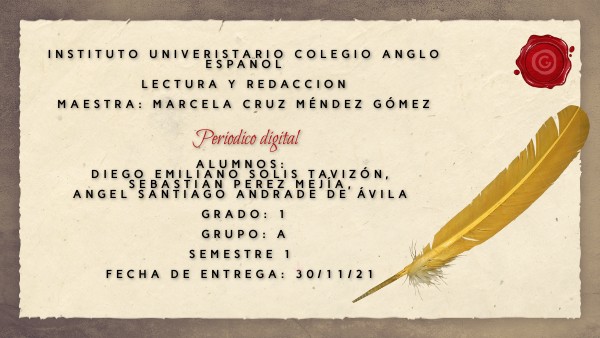 Instituto univeristario colegio anglo español lectura y redaccion Maestra: Marcela Cruz méndez gómez Alumnos: Diego Emiliano solis tavizón, Sebastian perez mejía, angel santiago andrade de ávila Grado: 1 Grupo: A Semestre 1 Fecha de entrega: 30/11/21