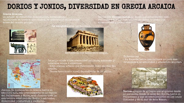 Jonios. Se instalaron en Grecia hacia el año 2000 a.C., más precisamente en la región del Peloponeso y Ática, modificando toda la estructura establecida. Medio y ambiente, diversidad productiva y cultural.