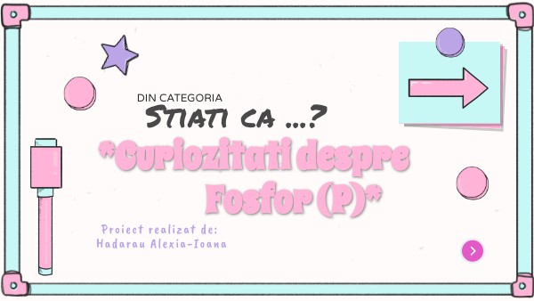 1. Fosforul alb este cel mai toxic alotrop de fosfor pentru corpul uman, fiind, alaturi de cel rosu, cel mai des intalniti in natura; 2. Cunoscut datorita capacitatii sale de a emana o lumina pala, fosforul se incadreaza in categoria metaloidelor, o categorie din tabelul periodic caracterizata prin detinerea unor caractere partiale ale metalelor si nemetalelor, nefiind intru- totul un metal.
