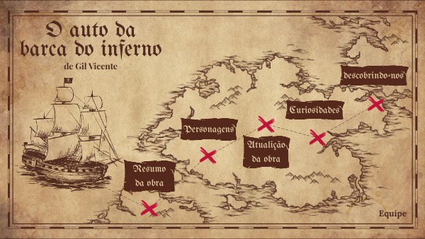 Infográfico animado contando um pouco sobre: "O auto da barca do inferno"