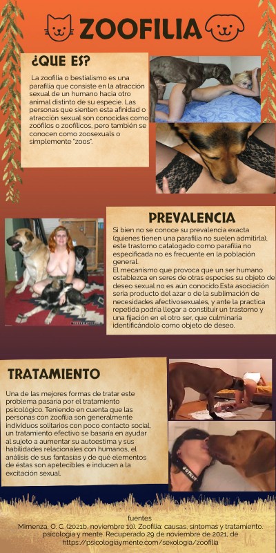 fuentes Mimenza, O. C. (2021b, noviembre 10). Zoofilia: causas, síntomas y tratamiento. psicologia y mente. Recuperado 29 de noviembre de 2021, de https://psicologiaymente.com/sexologia/zoofilia