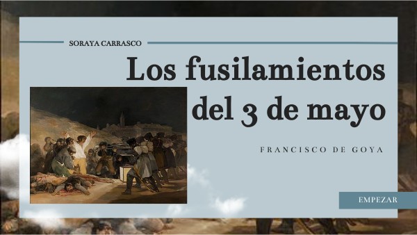 El cuadro El 3 de mayo de 1808 en Madrid, también conocido como Los fusilamientos en la montaña del Príncipe Pío o Los fusilamientos del 3 de mayo.En 1808, la invasión de España por las tropas napoleónicas colocó a Goya en una situación delicada, pese a todo, no se privó de plasmar los horrores de la guerra en obras como El 2 de mayo y Los fusilamientos del 3 de mayo, que reflejan los dramáticos acontecimientos de aquellas fechas en Madrid. El levantamiento del pueblo madrileño contra las tropas del general Murat, se saldó con el fusilamiento de civiles madrileños en castigo por su rebelión.